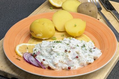Zarter Matjes trifft auf cremigen Schmand und aromatische Zwiebeln – ein herzhafter Mittagstisch voller Omega-3-Fettsäuren und in gerade mal 20 Minuten fertig.