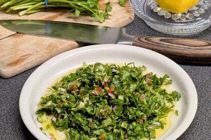 Ein grünes Kraftpaket voller Aromen: Feine Petersilie, knackiges Gemüse und ein spritziges Zitronen-Dressing bringen die Sonne des Orients direkt auf den Teller.