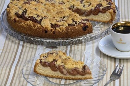 Saftige, selbst eingeweckte Pflaumen treffen auf fluffigen Hefeteig und knusprige Zimtstreusel – ein klassischer Genuss ganz ohne unnötigen Kristallzucker im Obst.