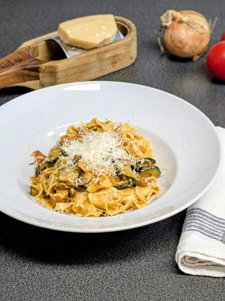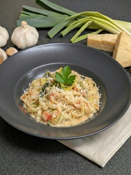 Lauch-Bandnudeln in Tomaten-Mozzarella-Soße