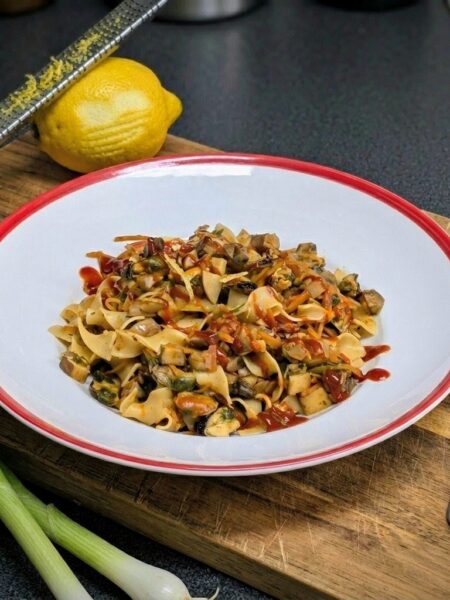 Champignon-Muschel-Pasta aus dem Wok
