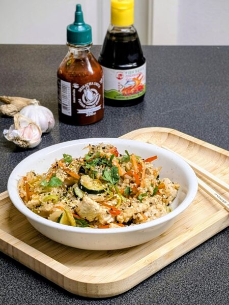 Bratreis mit velvetiertem Putenfleisch aus dem Wok