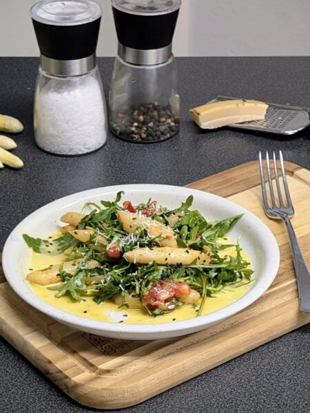 Warmer Rucola-Spargel-Salat mit Orangendressing