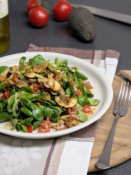 Warmer Pilz-Mix auf Feldsalat mit Argan-Finish