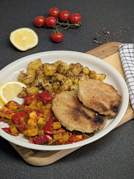 Kohlrabi-Schnitzel auf Paprikagemüse
