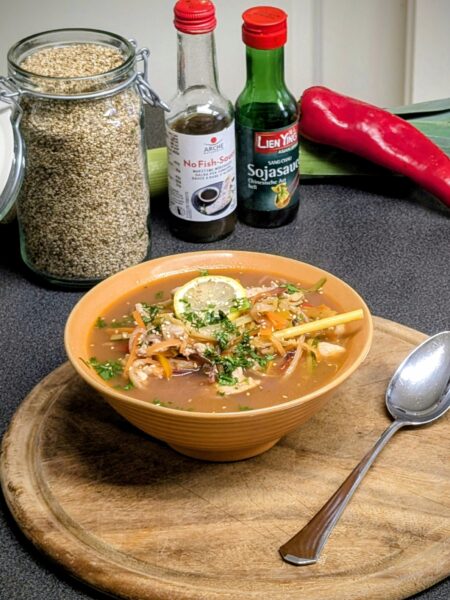 Hühnersuppe mit Gemüse und Konjak-Nudeln