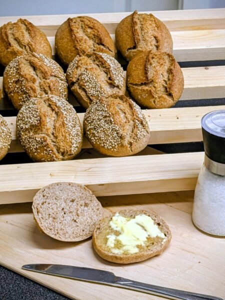 Weizenvollkorn-Brötchen mit Sauerteig und Sesam