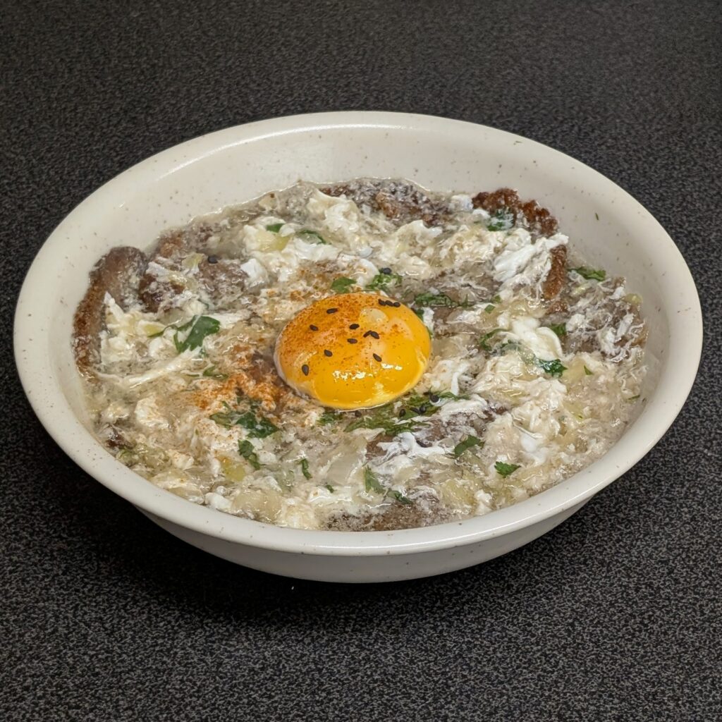 Die Basis ist altbackenes Brot, welches in einer kräftigen Brühe serviert wird. Ich verwende hier einen Rest meiner selbstgekochten, proteinreichen Knochenbrühe, aber du kannst jede kräftige Brühe dafür verwenden. In die kochend heiße Brühe quirle ich aus dem Eiweiß feine Flocken, während das Eigelb in der Pfanne wartet, um auf der Suppe zu landen. Das dünn geschnittene, altbackene Roggen-Vollkornbrot saugt die heiße Brühe auf und wird dadurch wieder weich und genießbar.