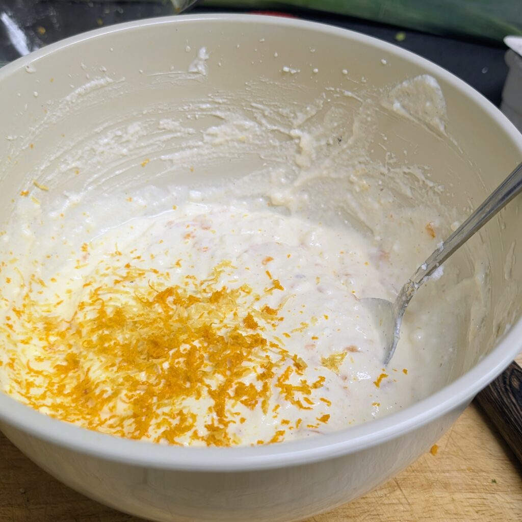 Für meine Käseküchlein habe ich sie heute fein gehackt und in der Pfanne karamellisiert. Dieser Schritt lohnt sich absolut, denn der Zucker verbindet sich fantastisch mit den ätherischen Ölen der Schale.