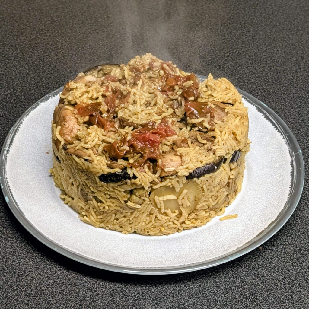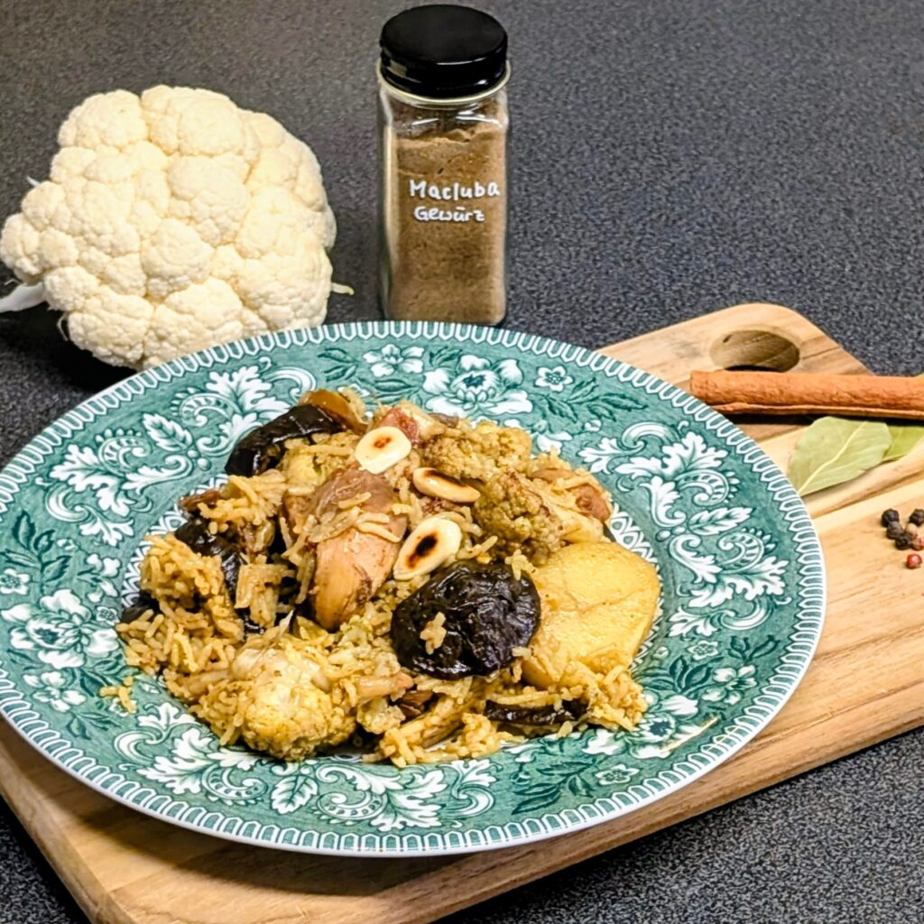 - Besonderheit: Die Maqluba ist durch die Kombination aus komplexen Kohlenhydraten und hochwertigem Geflügelprotein ein hervorragender Energielieferant für den Alltag. Die enthaltenen Gewürze wie Kurkuma und Piment fördern zudem aktiv die Verdauung und machen das Gericht besonders bekömmlich.