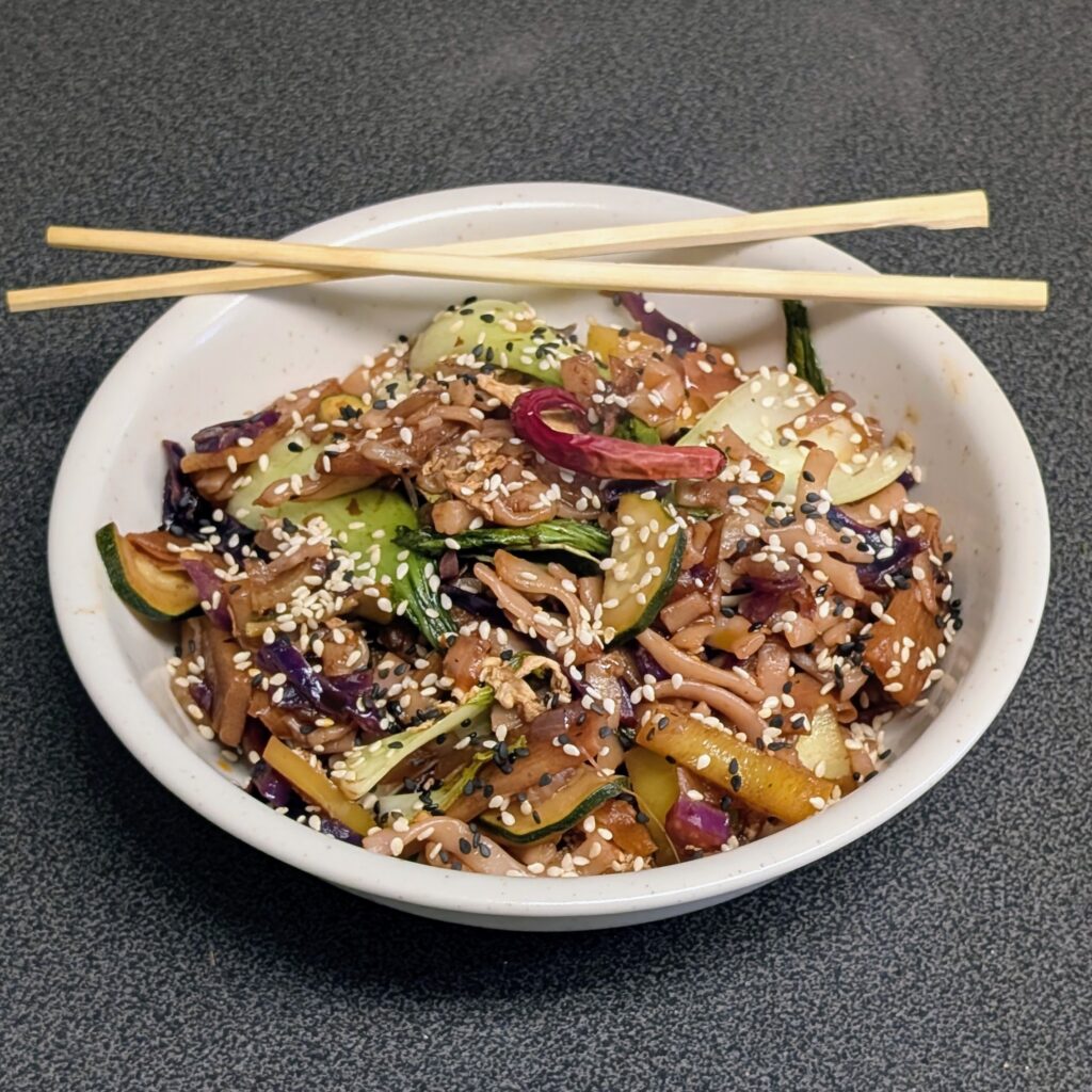 Die besten Gerichte entstehen oft ganz spontan, wenn ich einfach nur den Kühlschrank öffne und schaue, was weg muss. Heute war so ein Tag: Ein Rest Rotkohl, etwas Stangensellerie und ein Kopf Pak Choi warteten auf ihren Einsatz. Kurzerhand habe ich daraus ein asiatisch inspiriertes Wokgericht gezaubert – ein echtes „Cross-over-Highlight“ unter dem Motto: Asien trifft Deutschland.