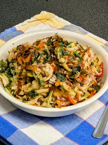 Während der Spargel sanft gar zieht, widme ich mich dem Pfannengemüse. Die Sahne verbindet sich mit dem Porree und den Paprikastreifen zu einer herrlich sämigen Sauce, die durch das Umamigewürz eine tolle Tiefe bekommt.